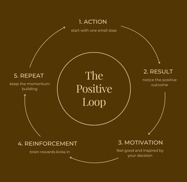 The best part about the Positive Loop is that it doesn’t start with a massive overhaul — it starts with one small action that feels good, not forced. When that action feels aligned, it naturally creates the motivation to keep going.
